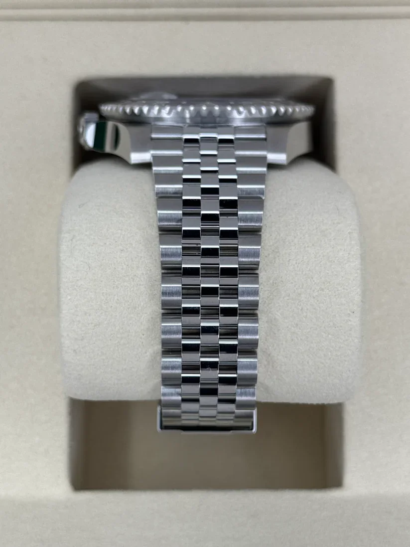 BRACELET | – Jubilee, five-piece links – Made with Solid 904L Grade Stainless Steel with DLC scratch-protection coating – Solid threaded screws, so you can easily remove bracelet links with just a small screwdriver – Folding Oysterlock safety clasp with Easylink 5 mm comfort extension link, exactly as Original |
