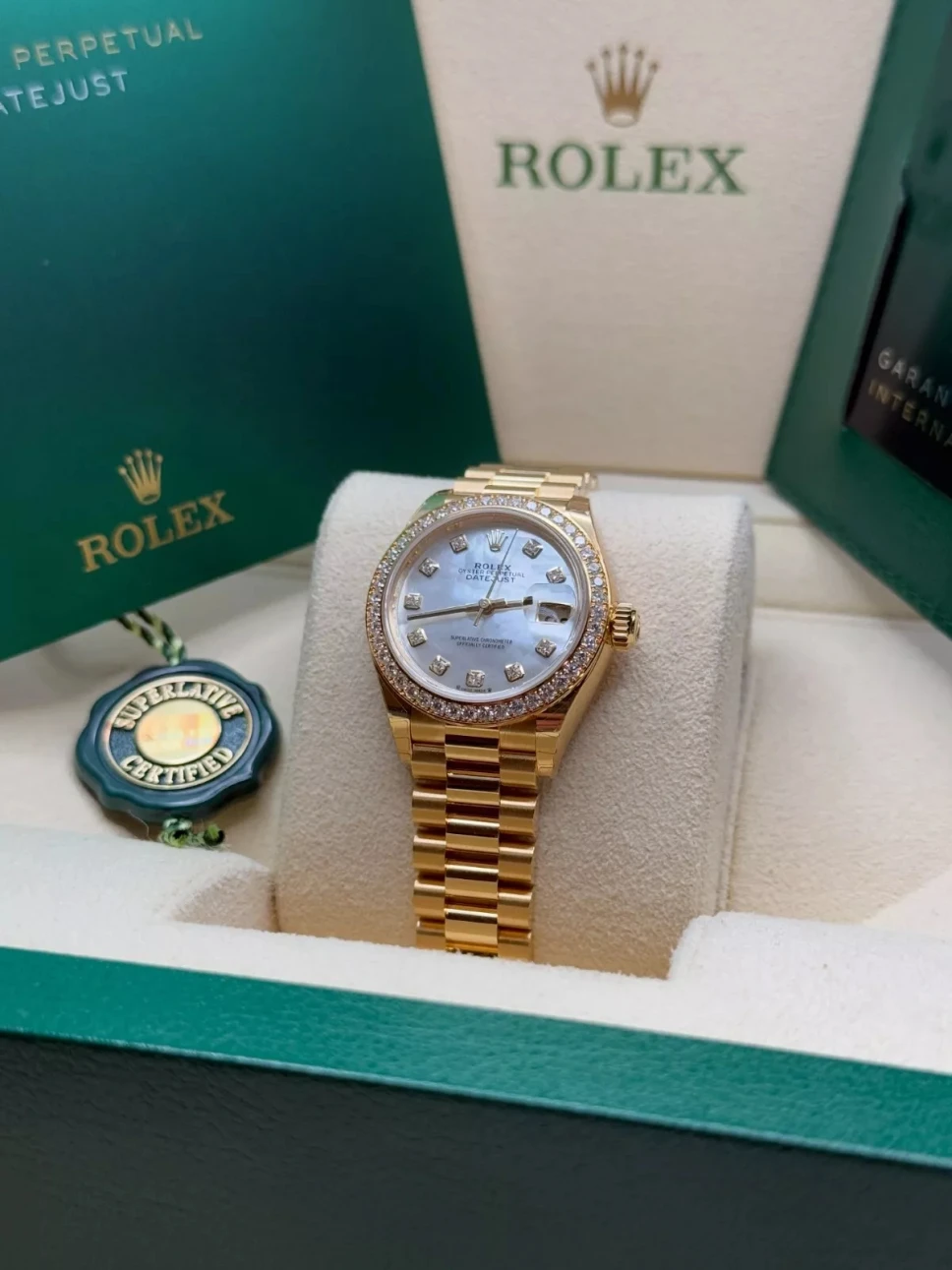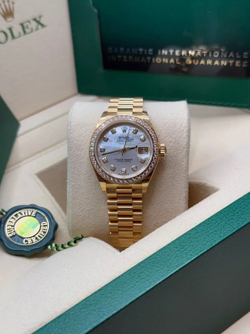 Rolex Lady-Datejust 28mm 279138RBR White Mother-of-Pearl Dial President Bracelet Watch