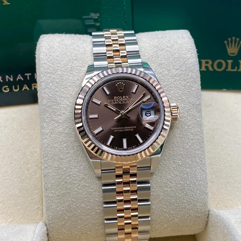 Rolex Lady-Datejust 28mm 279171 Chocolate Index Oyster Stainless Steel and Rose Gold