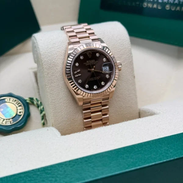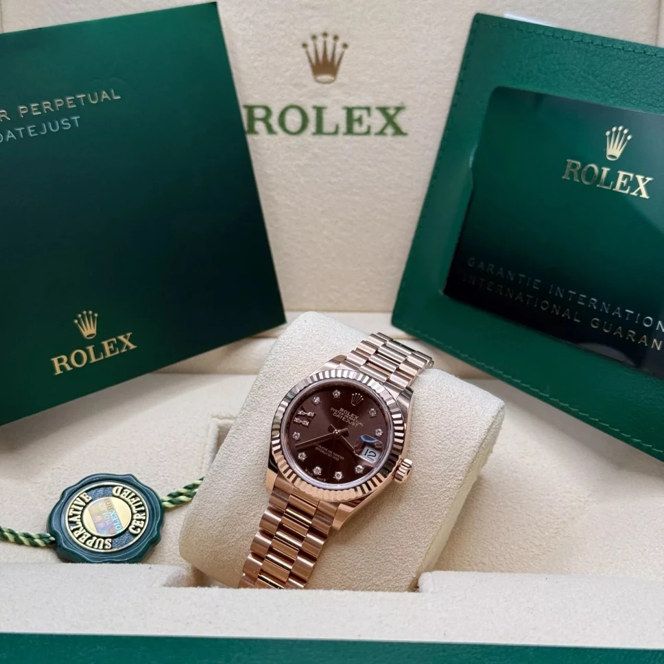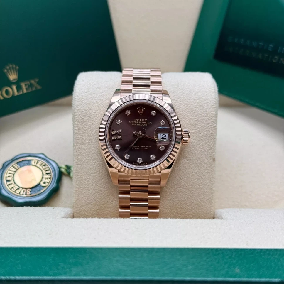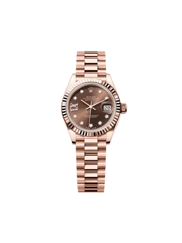Rolex Lady-Datejust 28mm 279175 Chocolate Diamond-Set Dial President Everose Gold