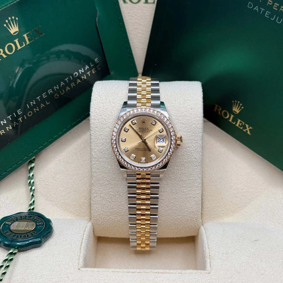 Be the first to review “Rolex Lady-Datejust 28mm 279383RBR Champagne Diamond Dial Yellow Rolesor Oyster Bracelet”