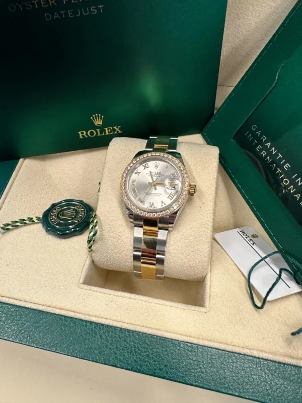 Rolex Lady-Datejust 28mm 279383RBR Silver Roman Dial Yellow Rolesor Oyster Bracelet