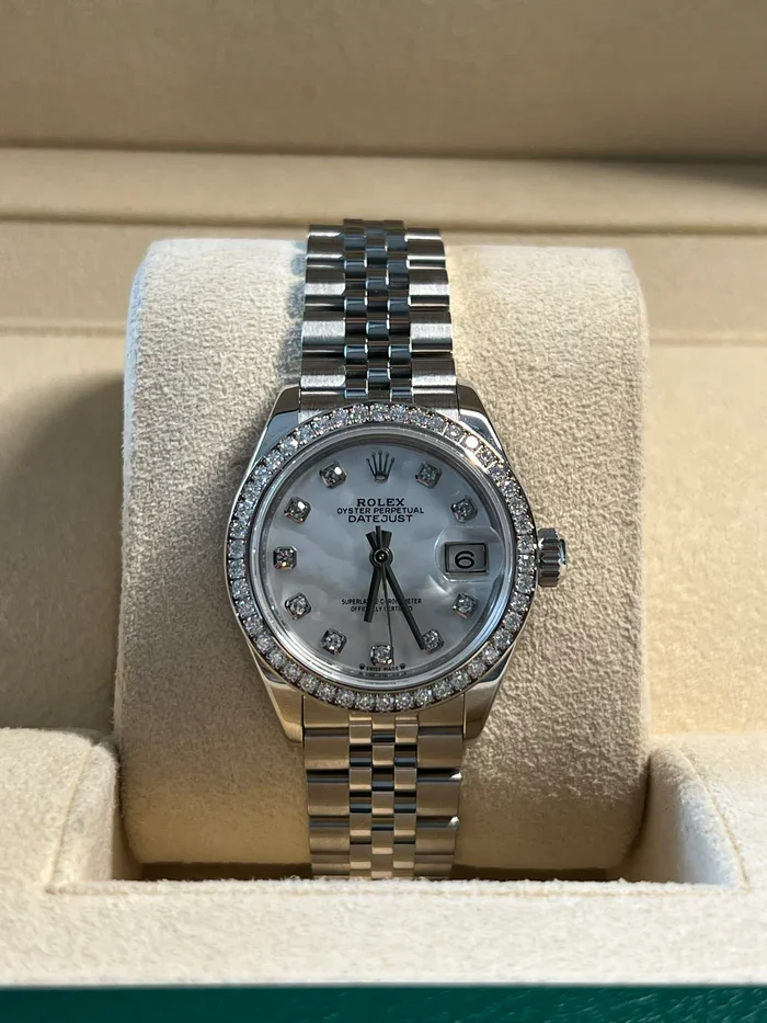 Rolex Lady-Datejust 28mm 279384RBR White Mother-of-Pearl Dial Oyster Bracelet