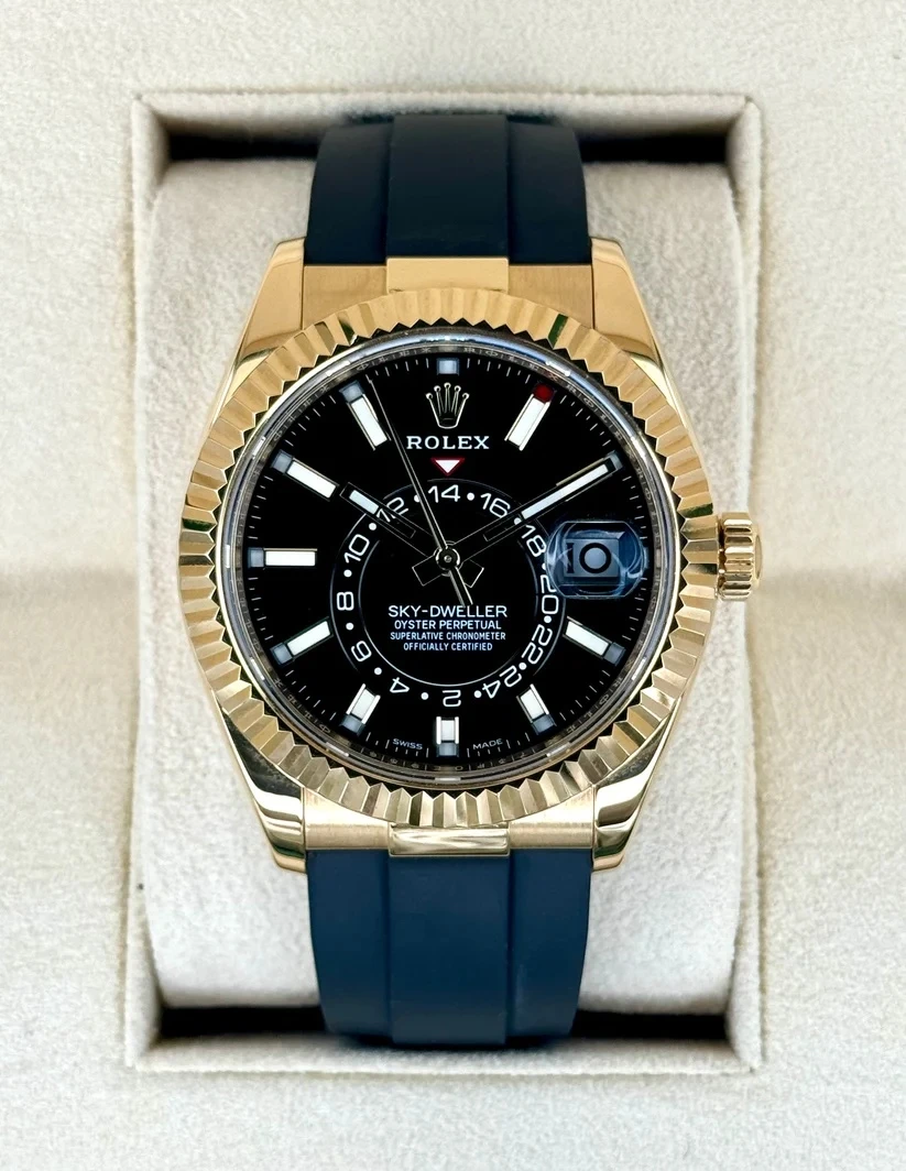 Rolex Sky-Dweller 42mm 336238-0002 Yellow Gold Black Dial Oysterflex
