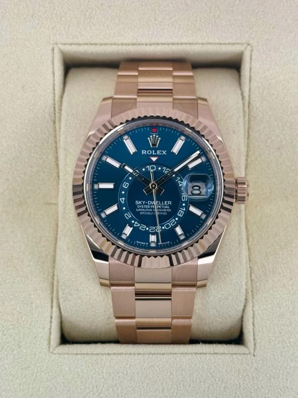 Rolex Sky-Dweller 42mm 336935-0001 Rose Gold Blue Dial Oyster