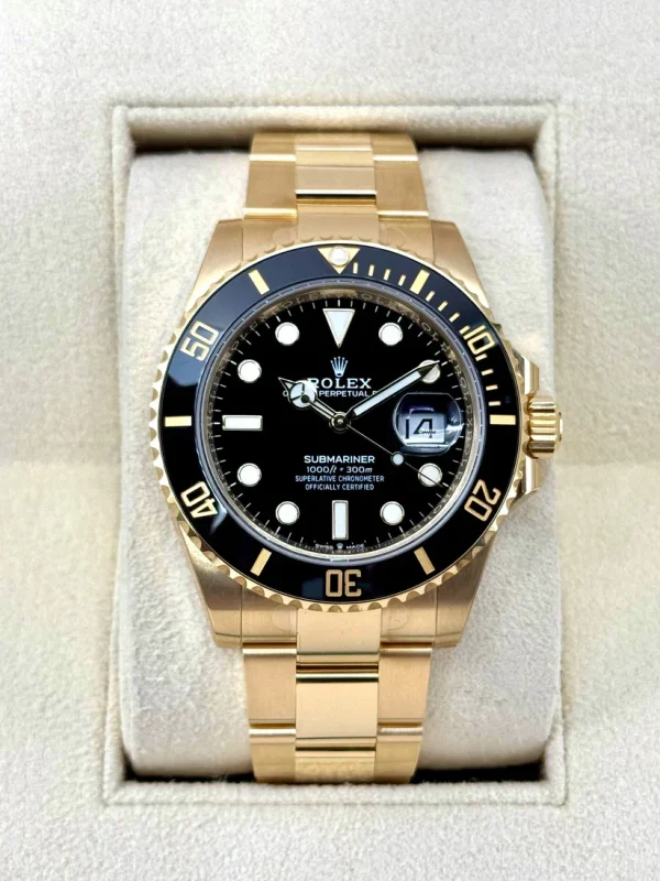 CASE | – 41mm Oyster Case – 5 Layer 18k Gold Plated over Solid 904L Stainless Steel, Monobloc Construction – Screw-Down Case-Back & Winding Crown – ROLEX ROLEX Laser Engraving on Rehaut Ring with Correct Alignment – Dimensions and Weight is Exact 1:1 Identical with Original |