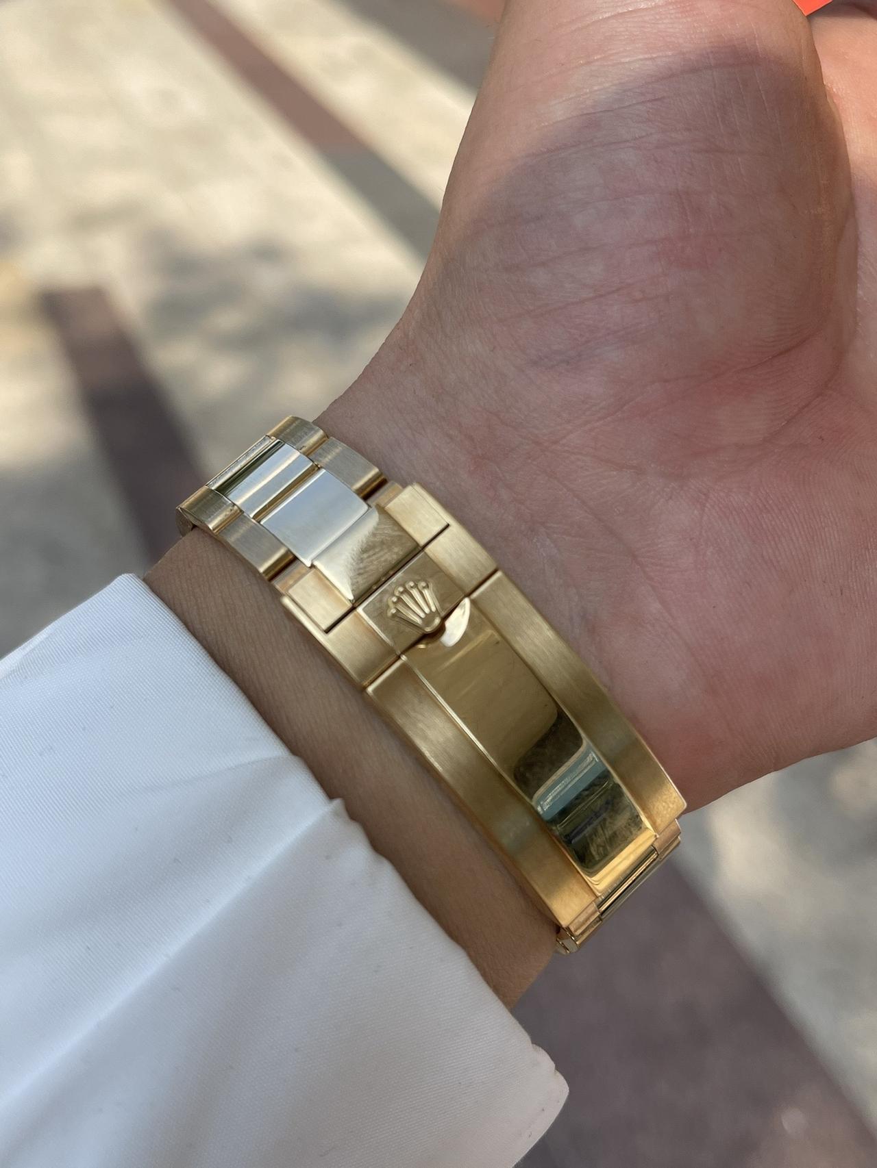 BRACELET | – Oyster design, flat three-piece links – 5 Layer 18k Gold Plated Solid 904L Grade Stainless Steel bracelet – Solid threaded screws, so you can easily remove bracelet links with just a small screwdriver – Folding OysterLock Safety Clasp with Rolex Glidelock extension system, exactly as Original |