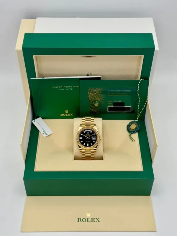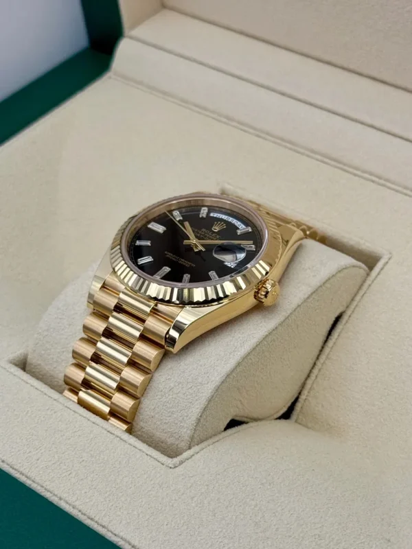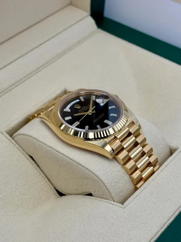 Rolex Yellow Gold President Day Date 40mm Black Diamond Baguette Dial – 228238