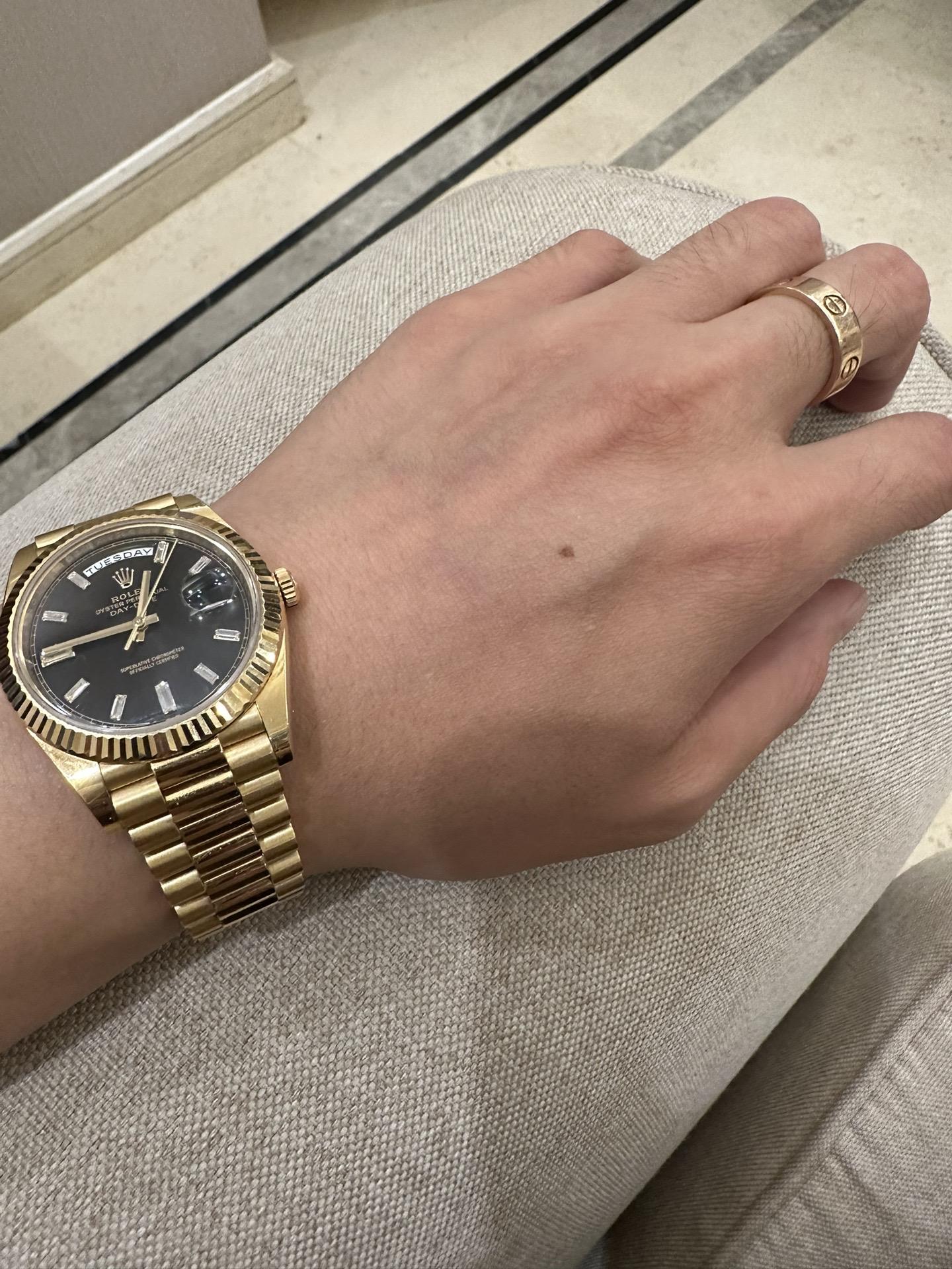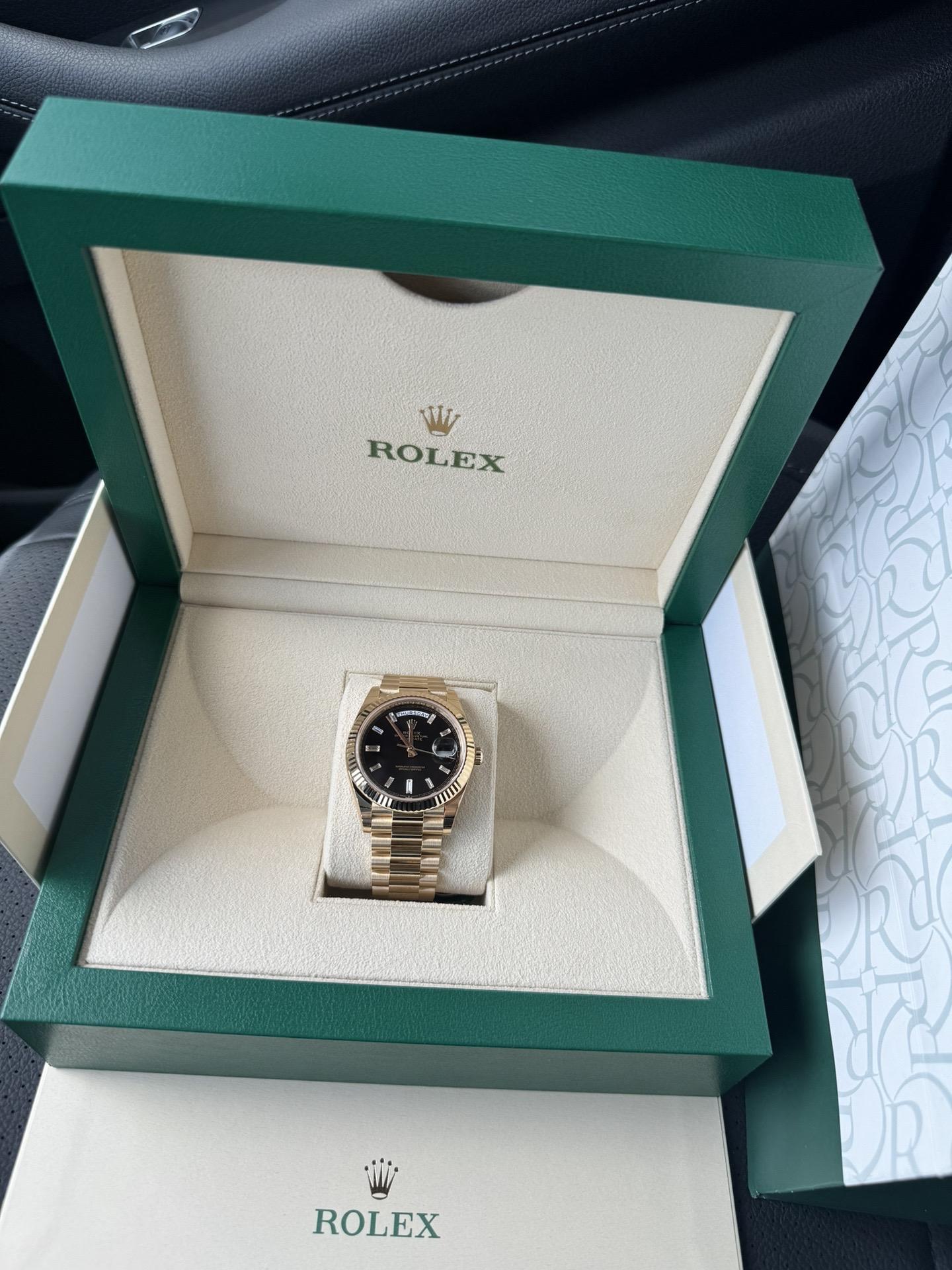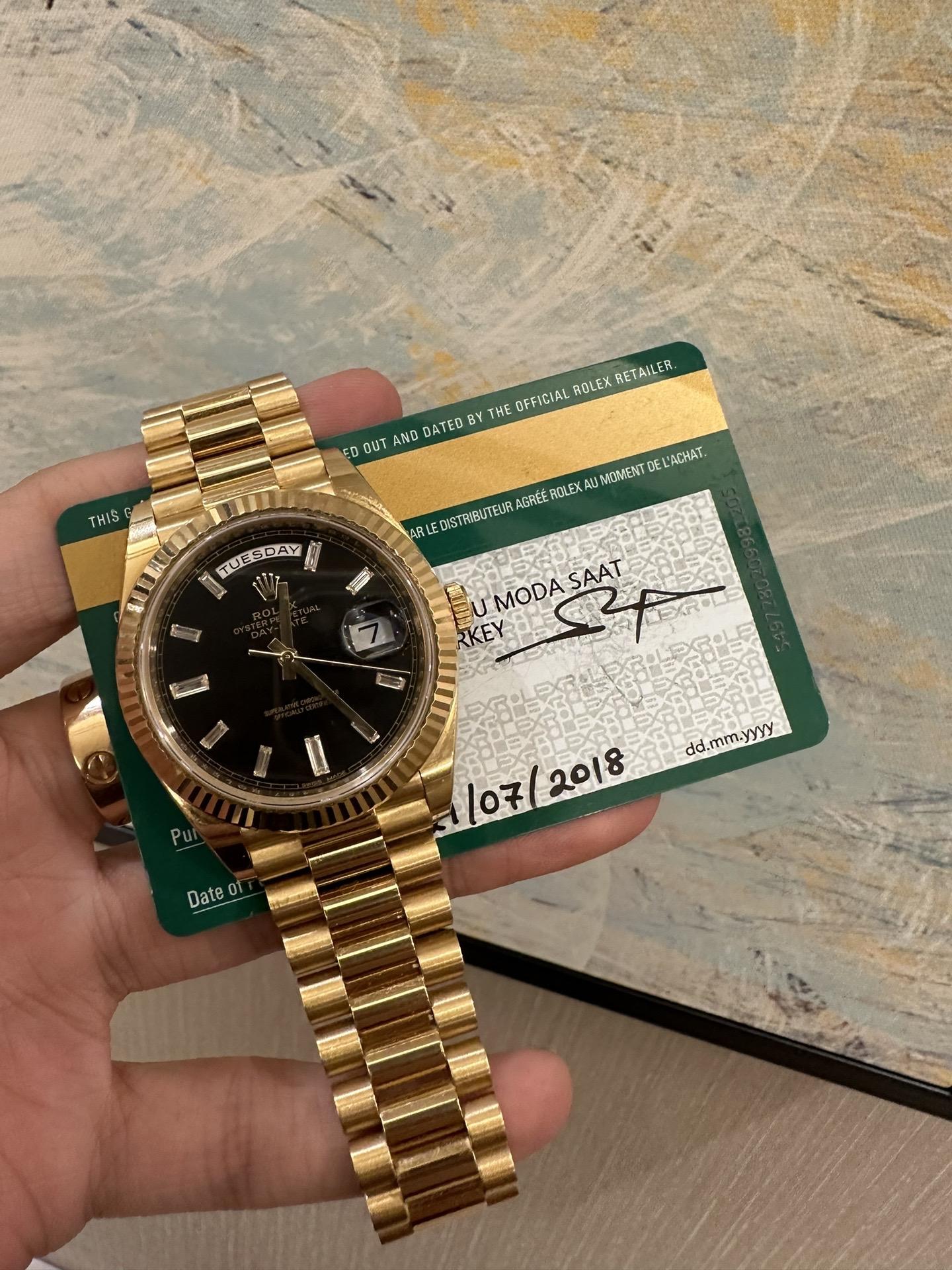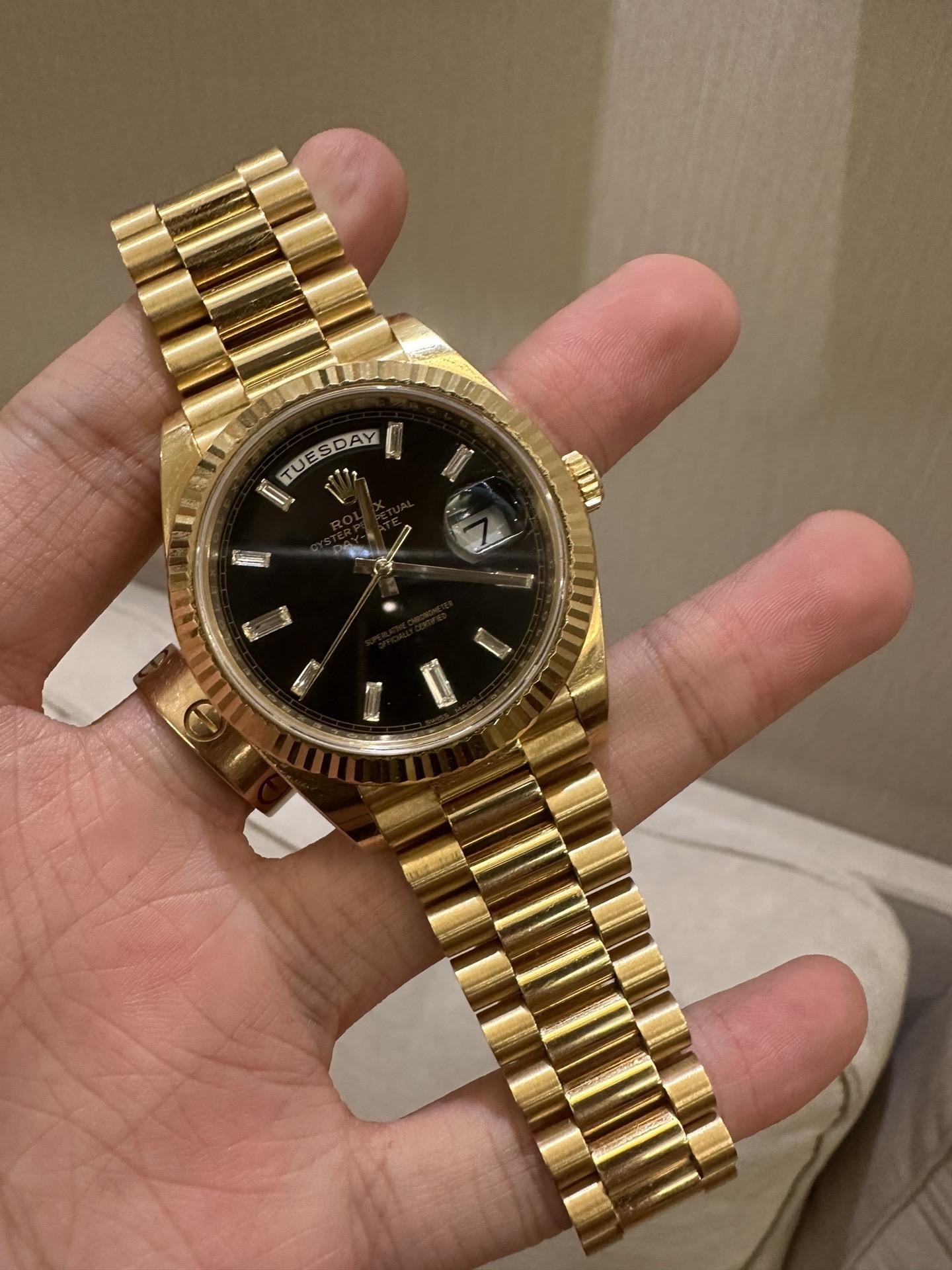 6 reviews for Rolex Yellow Gold President Day Date 40mm Black Diamond Baguette Dial – 228238