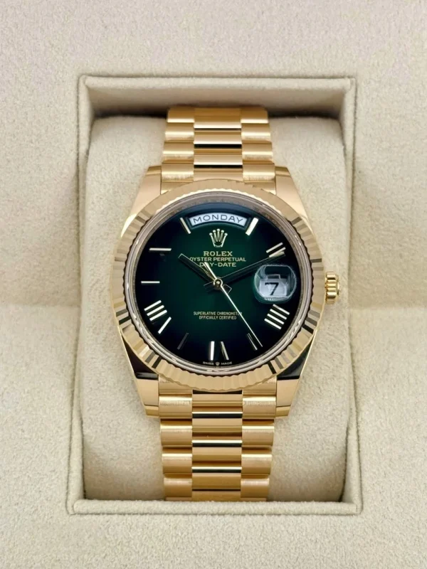 5 reviews for Rolex Yellow Gold President Day Date 40mm Green Roman Ombre Dial – 228238