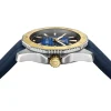 - Complete with a smoky blue dial and gold-plated hands