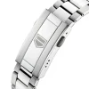Prestigious and resilient, the 40mm stainless steel case embraces refined ergonomics and finishes, while the silver sunray brushed dial features a bold horizontal pattern with black hands and indexes for enhanced visibility.
