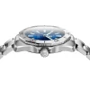 The vibrant blue dial is enhanced by luminescent hands and hour markers, and a date display at 3 o’clock.