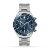 Protected by a bevelled sapphire crystal dome, the refined blue dial optimises readability, with three chronograph counters, a date display, and rhodium-plated indexes and hands filled with white Super-LumiNova® for incredible visibility in all conditions.
