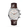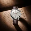 This 42mm model pairs a brushed steel case with a steel crown and a beautifully stitched, hand-crafted brown alligator leather strap.