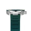 This 44mm model pairs a brushed and polished steel case with a green rubber strap. Mounted to the case is the fixed bezel complete with a tachymeter scale.
