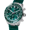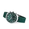 Protected by a bevelled sapphire crystal dome, the striking brushed green dial is enhanced with rhodium plated hands, three chronograph counters, a date display, and indexes filled with Super-LumiNova® for incredible readability in all conditions.