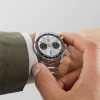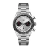 - Silver sunray brushed dial with twin black azure sub-dials