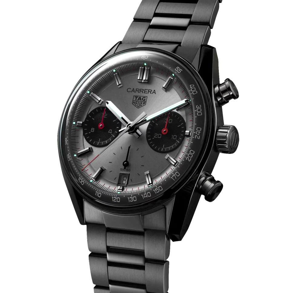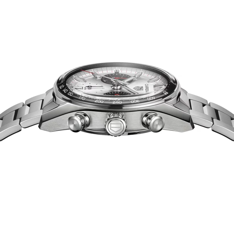 Designed for a new era of racing and heritage enthusiasts, this Carrera model features a bezel-free, 39mm steel case paired with a chic three-row steel bracelet.