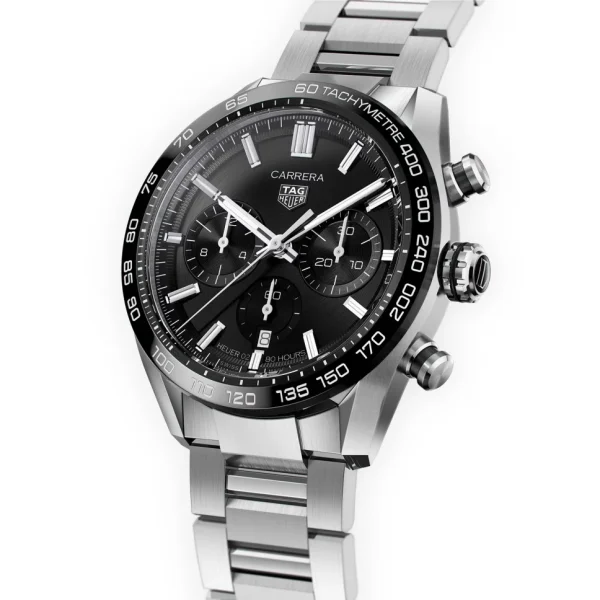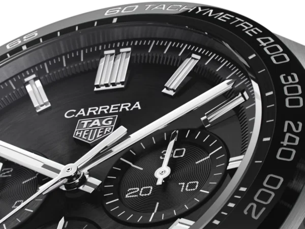 Driven by the Heuer 02 calibre automatic movement, this sophisticated timepiece boasts a distinct sense of style, with a sophisticated black dial framed by a classic black ceramic bezel.