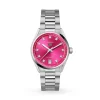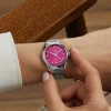The dial’s intense pink hue is complemented by rhodium-plated, facetted, and polished hands filled with white SuperLuminova®, ensuring clarity and a touch of glamour under any lighting conditions.