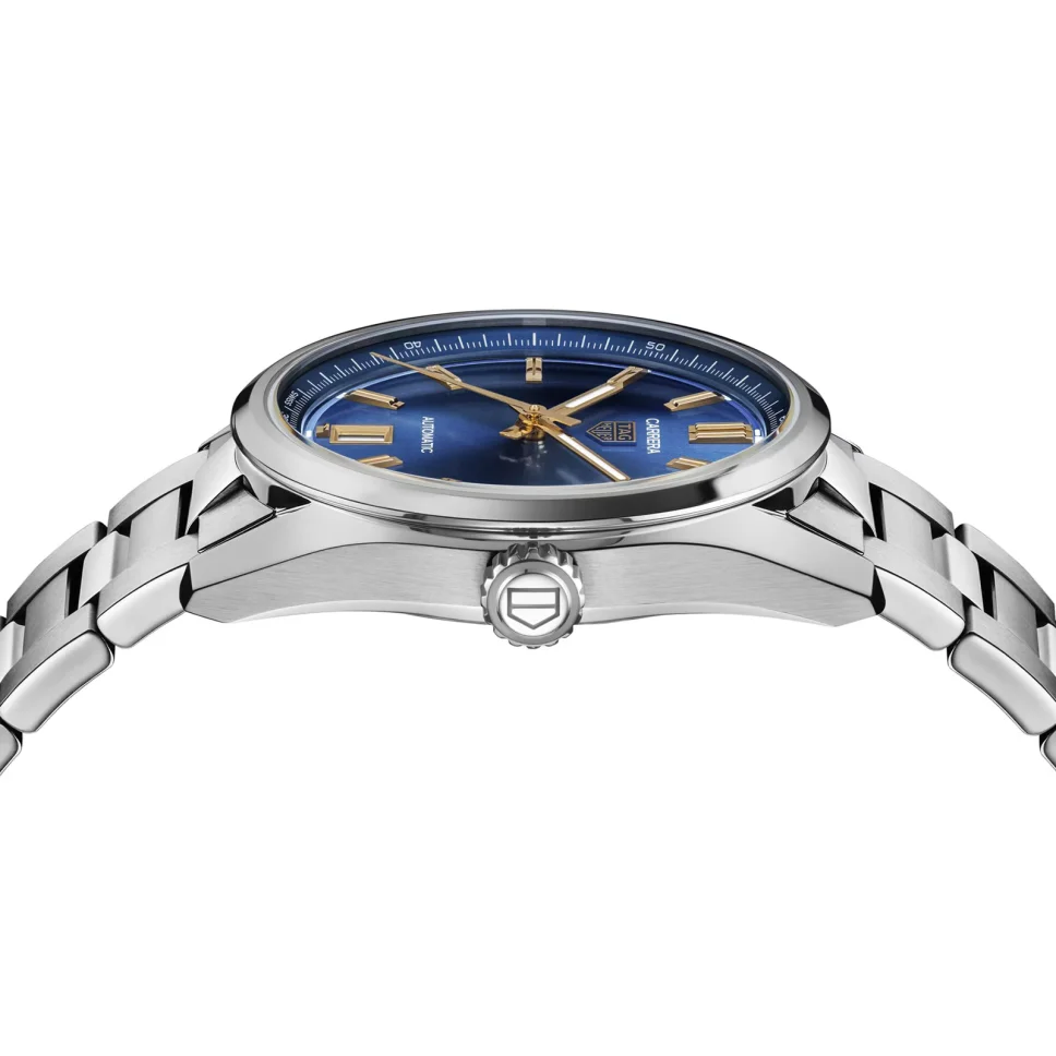 This Carrera Date model finds the perfect balance between elegance, comfort, and endurance, with a robust steel case elevated with prestigious details such as a blue gradient ring along the flange.