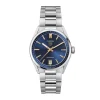 - Striking blue sunray dial with contrasting 18K 5N rose gold-plated hands and indexes