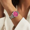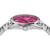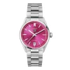 • Vibrant pink sunray dial with contrasting hands and indexes