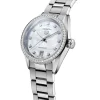 - Ethereal mother-of-pearl dial with dazzling diamond hour markers