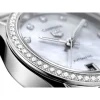 This prestigious model makes a dramatic statement with its ethereal mother-of-pearl dial, enhanced by dazzling diamond hour markers and framed by a radiant bezel set with a further 56 diamonds.