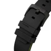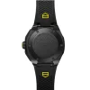 Crafted from Grade 2 titanium coated with black DLC, the case combines exceptional durability and bold style. Water resistance up to 200 metres ensures versatility, while the bi-coloured rubber strap adds a striking finish.