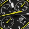 The black opalin dial is encircled by a lime lacquered track, giving the watch a fresh, modern edge. Luminescent hands and indexes ensure readability by day and night, while the tachymeter bezel highlights the watch’s racing roots.
