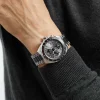 The 44mm stainless steel case houses a luxurious anthracite grey dial with bold steel indexes for a contrasting finish.