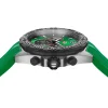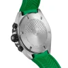 The sporty 43mm stainless steel case houses an eye-catching green dial with a matching rubber strap for a distinctly modern twist.