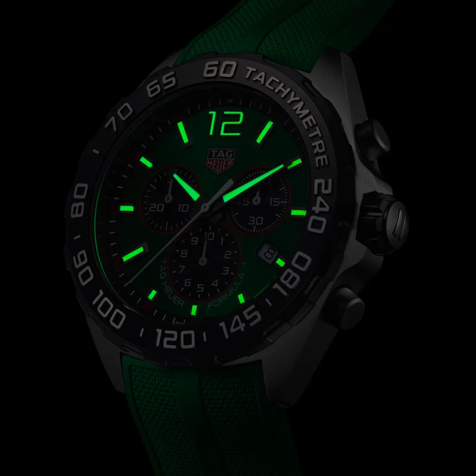 TAG Heuer Formula 1 Quartz Chronograph 200M 43mm Mens Watch Green Rubber CAZ101AP.FT8056