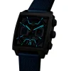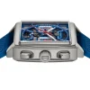 - 39mm square titanium case with a versatile blue rubber and leather strap