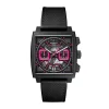 <p>This 39mm titanium timepiece takes inspiration from the pioneering original, the first square chronograph, released in 1969. The iconic square case is brought to life with vibrant pink elements, including both square sub-dials, creating a bold and contemporary aesthetic with its electric colour scheme.</p>