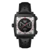 Reviving the aesthetics of original TAG Heuer stopwatches from the 1960s and ‘70s, the TAG Heuer Monaco Chronograph Stopwatch brings the thrill of the racetrack to the wrist. A tribute to TAG Heuer’s rich timekeeping heritage, this limited-edition chronograph in black DLC-coated titanium pairs the iconic Calibre 11 with a resolutely vintage-inspired design.