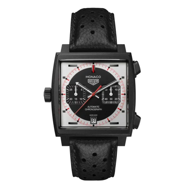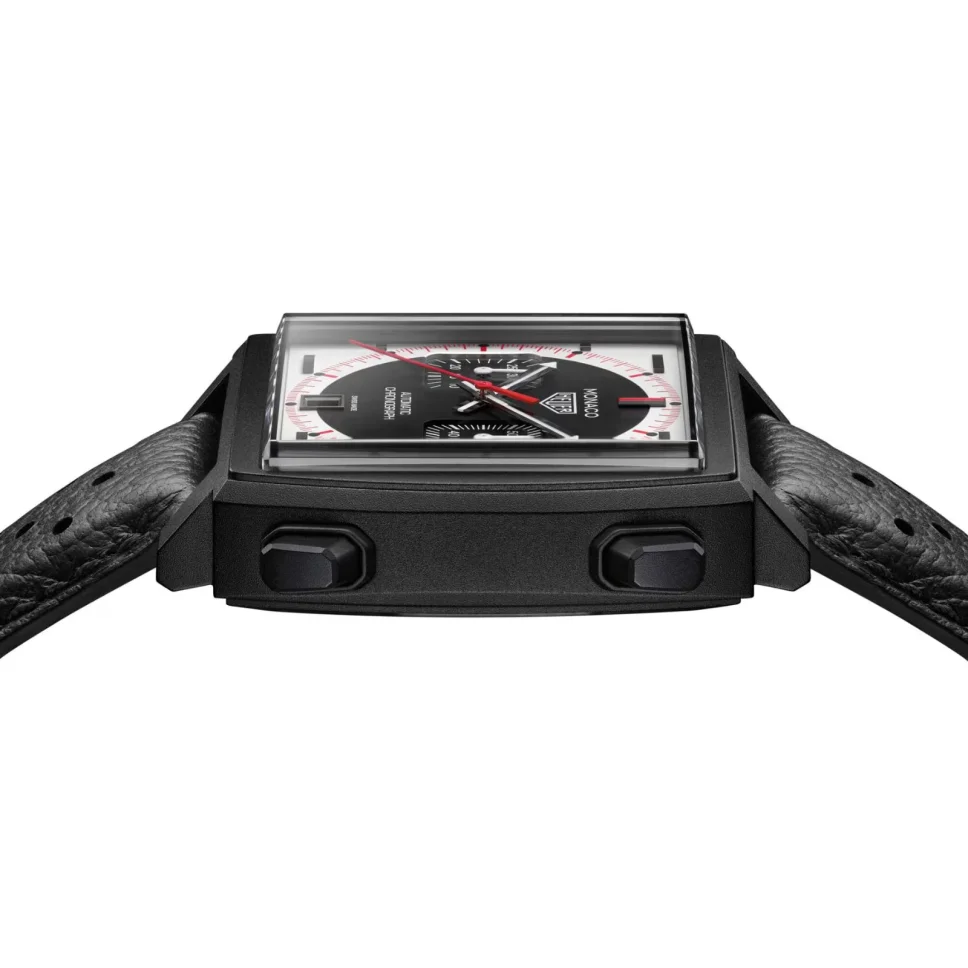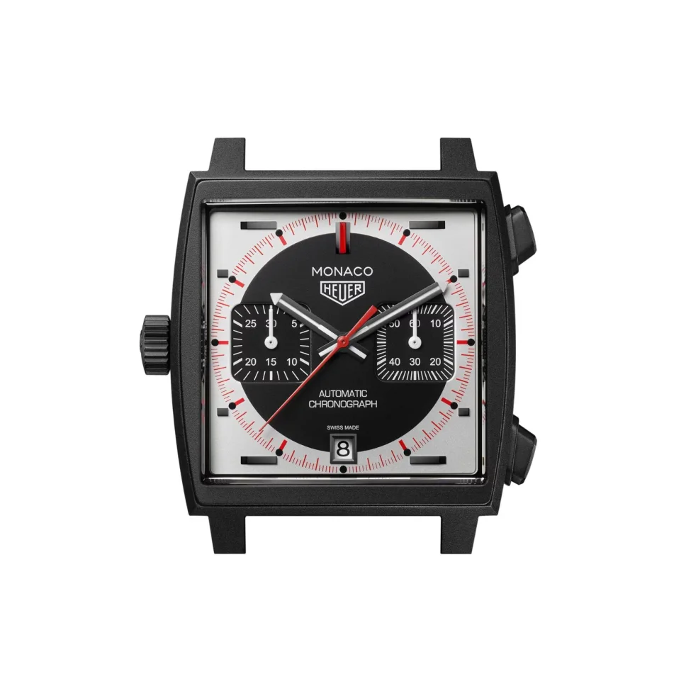 The all-black box with striking red accents echoes the watch’s striking aesthetics. A seamless blend of heritage and modernity, it encapsulates the Monaco spirit in its purest form.