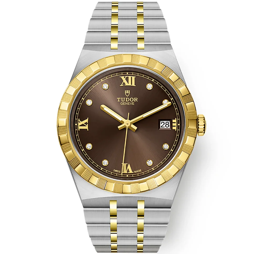 TUDOR Royal 38mm Two-Tone Brown Diamond Dial Automatic Bracelet Watch M28503-0008