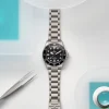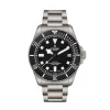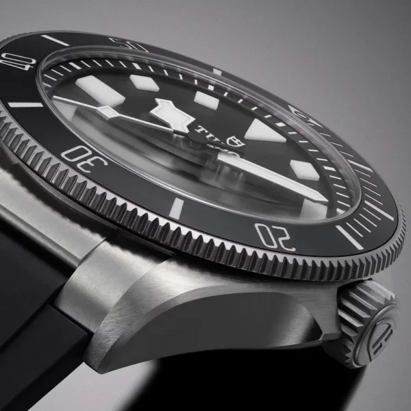 The newly redesigned case makes use of both grade 2 and grade 5 titanium and includes a compact helium escape valve for fluid egress when used in a saturation diving environment. Using the standard Pelagos as a starting point, the dial has been scaled up for legibility. The hands are thicker, the markers are bigger, and the minute hand boasts green luminescence along with the PIP to easily track elapsed time.