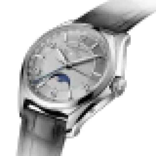 Functions Hours, Minutes, Second in center, day of the week in apperture, stop seconds device, month in aperture, hand-type date, precision moon phase
