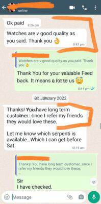 At TIME ROLEX, we understand that as a new customer, trust is a major factor when purchasing Super Clone Watches. You might be wondering about the authenticity of reviews you see online. In today’s digital world, it’s easy for online sellers to manipulate reviews by posting fake ones or displaying doctored WhatsApp conversations. Unfortunately, many sellers do this to trick buyers, and we are deeply concerned about the financial loss this can cause.